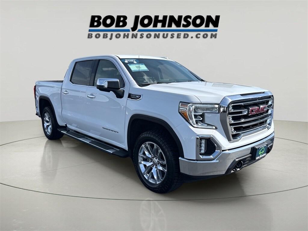 Introducing the 2021 GMC Sierra 1500 SLT, a purpose-built pickup that blends rugged capability with refined comfort. From the moment you slide into the Jet Black leather seating, youll feel the trucks premium interior appointments and thoughtful tech, like the 4G LTE Wi-Fi hotspot and GMC Connected Access for seamless connectivity on every adventure. Performance is ready at your command with a robust EcoTec3 5.3L V8 mated to an 8-speed automatic transmission and 4WD, delivering confident acceleration and serious trailering capability thanks to the ProGrade Trailering System, Integrated Trailer Brake Controller, and Hitch Guidance with Hitch View. Practical luxuries abound: heated front seats, ventilated driver seat, power adjustable settings, a power sliding rear window, and multiple charging ports to keep everyone and every device powered on long trips. The exterior exudes confidence with 20" polished aluminum wheels, chrome accents, and a practical chrome grille, while features like the Auto-Locking Rear Differential and off-road-ready 4x4 capability ensure youre prepared for changing conditions. With conveniences such as Keyless Open & Start, Remote Vehicle Starter, Rear USB ports, and a comprehensive suite of driver-assist and comfort amenities, this Sierra 1500 is built to elevate your daily drive and weekend haul. If youre seeking a capable, well-equipped truck that doesnt compromise on luxury, this Certified 2021 Sierra 1500 SLT is ready for your test drive. Please verify the accuracy of information in regard to the actual vehicle equipment, miles, vehicle specifications, location, and vehicle price with dealer.