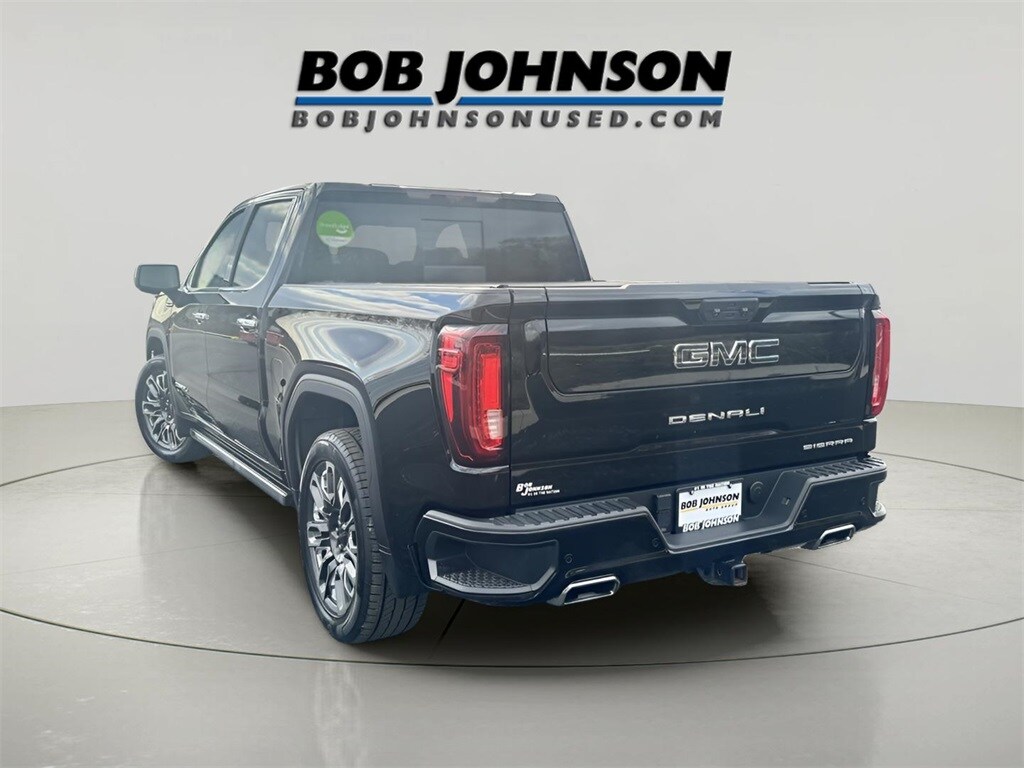 Certification Program Details: CARBRAVO Certified Pre-Owned Details: *6-month/6,000-mile * Limited Bumper-to-Bumper Warranty coverage with no deductible. * 172 Point Inspection *Courtesy Transportation Should your vehicle need warranty repair, your CarBravo dealer will make sure you have alternative transportation. *3month SiriusXM® trial subscription * with 165+ channels in the car plus access to 350+ channels on the SiriusXM® App. Enjoy commercial free music, performances and interviews, plus comedy, talk, sports and more. *Get a 1month trial of OnStar® * safety services like Automatic Crash Response, * Roadside Assistance * and the OnStar Guardian® app. * Plus, stay connected with in-vehicle data and your vehicle's mobile app. * Roadside Assistance * Vehicle History * Warranty Deductible: $0. 26/29 City/Highway MPG 2023 GMC Sierra 1500 Denali Ultimate 4WD Sierra 1500 Denali Ultimate CARBRAVO CERTIFIED, 4D Crew Cab, EcoTec3 6.2L V8, 10-Speed Automatic, 4WD, Onyx Black, Alpine Umber Leather, 120-Volt Bed Mounted Power Outlet, 120-Volt Instrument Panel Power Outlet, 2 Charge/Data USB Ports Inside Center Console, 2 Type-C Charge-Only Rear USB Ports, 2 USB Ports, Auto-Locking Rear Differential, Bed View Camera, Bose Premium Series w/12-Speaker System, Chrome Recovery Hooks, Color-Keyed Carpeting Floor Covering, Compass, Deep-Tinted Glass, Electric Rear-Window Defogger, Electrical Steering Column Lock, Floor-Mounted Center Console, Front Rainsensing Wipers, GMC Connected Access Capable, HD Surround Vision, Heated 2nd Row Outboard Seats, Heated Driver & Front Outboard Passenger Seating, Heavy-Duty Air Filter, Hill Descent Control, Hitch Guidance, Hitch Guidance w/Hitch View, In-Vehicle Trailering App, Integrated Trailer Brake Controller, Keyless Open & Start, LED Cargo Area Lighting, Multicolor 15" Diagonal Head-Up Display, MultiPro Audio System by Kicker (LPO), OnStar & GMC Connected Services Capable, Perimeter Lighting, Power Door Locks, Power Front Passenger Windows w/Express Up/Down, Power Front Windows w/Driver Express Up/Down, Power Rake & Telescoping Steering Column, Power Rear Windows w/Express Down, Power Sliding Rear Window w/Rear Defogger, Power Sunroof, Preferred Equipment Group 5SB, Push Button Start, Rear Cross Traffic Braking, Rear Pedestrian Detection, Rear Wheelhouse Liners, Remote Vehicle Starter System, SiriusXM w/360L, Spray-On Pickup Bed Liner w/Denali Logo, Steering Wheel Audio Controls, Theft Deterrent System (Unauthorized Entry), Trailer Camera Provisions, Trailer Side Blind Zone Alert, Trailer Tire Pressure Monitor System, Trailering Package, Ultrasonic Front & Rear Park Assist, Universal Home Remote, Vader Chrome Header w/Signature Denali Grille, Ventilated Driver & Front Passenger Seats, Wi-Fi Hotspot Capable, Wireless Charging, Wireless Phone Projection. Odometer is 795 miles below market average!