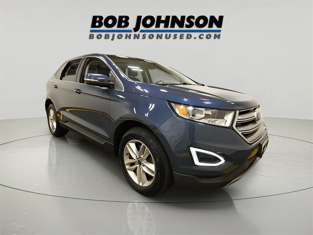 This vehicle is offered exclusively by Bob Johnson Budget Lot, home of the Bob Johnson Auto Groups lowest priced pre-owned vehicles. Bob Johnson Budget Lot is located at 4621 W. Ridge Rd., Spencerport, NY 14559. Stop in or call (585) 488-5420 to schedule your test drive today! Recent Arrival! 2016 Ford Edge SEL AWD 4D Sport Utility, 3.5L V6 Ti-VCT, 6-Speed Automatic with Select-Shift, Blue Metallic, Ebony Leather, Auto-Dimming Driver's Sideview Mirror, BLIS Blind Spot Information System, Cold Weather Package, Equipment Group 201A, Foot-Activated Hands-Free Power Liftgate, Front & Rear All-Weather Floor Mats, Heated Steering Wheel, Leather-Trimmed Heated Bucket Seats, Perimeter Alarm, Power Converter 110V Outlet, Premium 9 Speaker Audio, Radio: AM/FM Stereo w/Single CD/Navigation, Remote Start System, SiriusXM Radio, SiriusXM Traffic & Travel Link, SYNC 3, Technology Package, Universal Garage Door Opener, Utility Package.